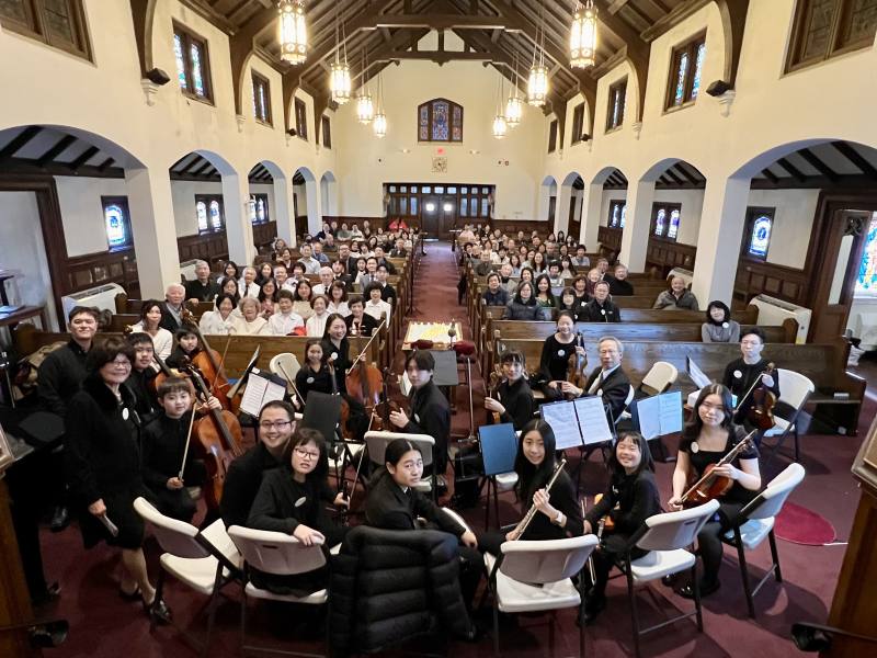 今年二二八紀念活動,由洪蜜長老主持,並邀請從臺灣遠道而來的王榮義牧師證道。除了參與民眾點燭為臺灣祈福,活動還特別請到旅居波士頓的大提琴家林明慧、小提琴家林政穎,召集組成有著傳承意涵、橫跨年齡層的管弦樂團,與林妤婷老師指導的聖歌隊合作;在王明哲音樂國際協會執行長林雪幸教授的支持協助下,在紀念禮拜中演出 〈臺灣〉及〈美麗島〉、〈願 (為這塊土地阮誠心祈禱)〉等歌曲。具有渲染力的樂音引領會眾們一同合唱,優美的旋律撫慰人心。