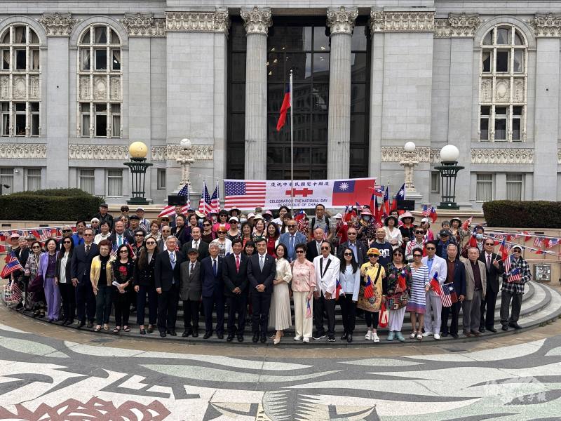 屋崙中華會館10月9日於屋崙市政府前廣場舉行慶祝中華民國114年國慶升旗典禮,駐舊金山辦事處處長伍志翔伉儷、副處長朱永昌偕辦事處同仁、金山文教中心劉岱欣副主任等出席同慶。