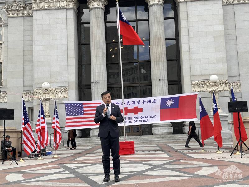 伍志翔致詞表示,非常榮幸能夠來到屋崙與大家齊聚一堂,共同慶祝中華民國114年雙十國慶,在此向各位致上最誠摯的祝賀與敬意。他表示,雙十國慶不僅是國家生日,更象徵著中華民國114年來,在艱辛歷程中不斷追求進步的精神,提醒臺灣人民,民主、自由與團結正是我們最珍貴的共同價值。伍志翔指出,今天的中華民國,在民主深化、經濟發展、科技創新與文化交流等各方面,都獲得國際肯定,這些成就不僅源自全民的努力,也同樣歸功於海外僑胞,尤其是東灣地區僑界長久以來的支持與貢獻。他表示,駐舊金山辦事處將繼續與僑胞們攜手同心,推動臺美交流,讓中華民國臺灣在國際舞臺上更加耀眼。