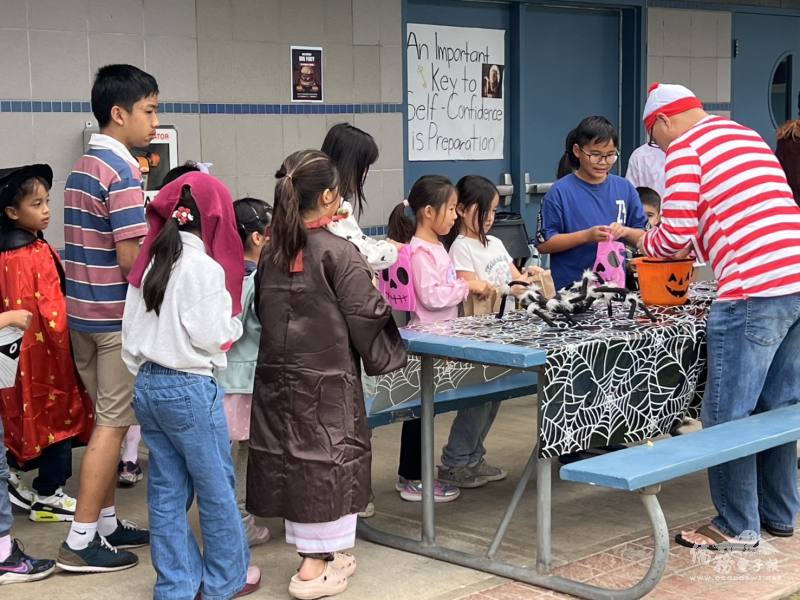 育林中文學校於10月25日在Valley Vista High School舉辦萬聖節慶祝活動,當天氣氛熱鬧非凡。活動設置了多個關卡,由每位家長分工負責,小朋友們穿著自己喜愛的變裝,依序到每個攤位進行「trick or treat」。整個活動不僅讓孩子們沉浸在萬聖節的歡樂氛圍中,也增進了家長與孩子間的互動。