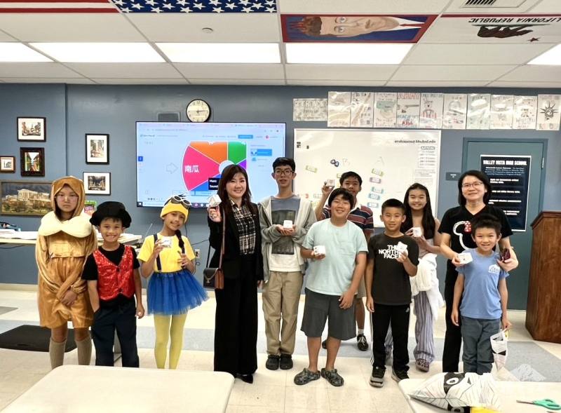 橙縣文教服務中心主任蕭蓓如也特別應邀參與此次活動,並應景帶糖果給學生「trick or treat」。蕭蓓如主任還利用這個機會向老師們推廣「全球華文網」,鼓勵老師們多加利用其中的教學資源,並建議學生們回家可以進行網上復習,深化學習成效。