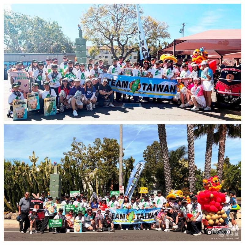 當天近100位臺灣鄉親組成陣容浩大的Team Taiwan,除橙縣文教中心主任蕭蓓如、僑務顧問沈柏文、洛杉磯臺灣會館董事暨臺灣學校校長林淑卿、Laguna Woods臺灣同鄉會楊枝美、柑縣臺灣醫師及牙醫公會前會長郭素容與林惠洲、柑縣臺灣同鄉會前會長簡勉應邀參加外,北美洲臺灣婦女會、聖地牙哥臺灣同鄉會成員及帕沙迪那社區學院(Pasadena College)臺灣留學生也踴躍加入挺臺灣行列。